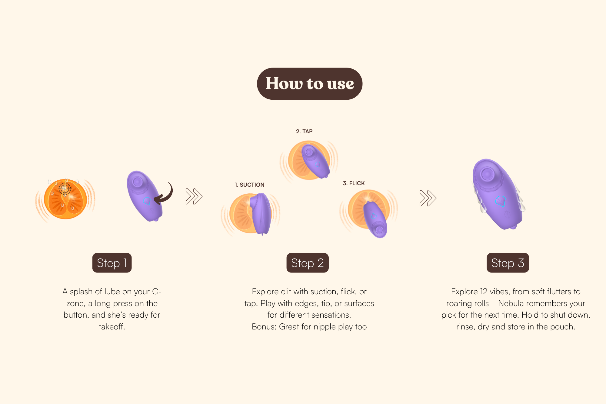- Find Your Spot: Hover over your clit and explore angles. Try a cheeky detour on nipples too!