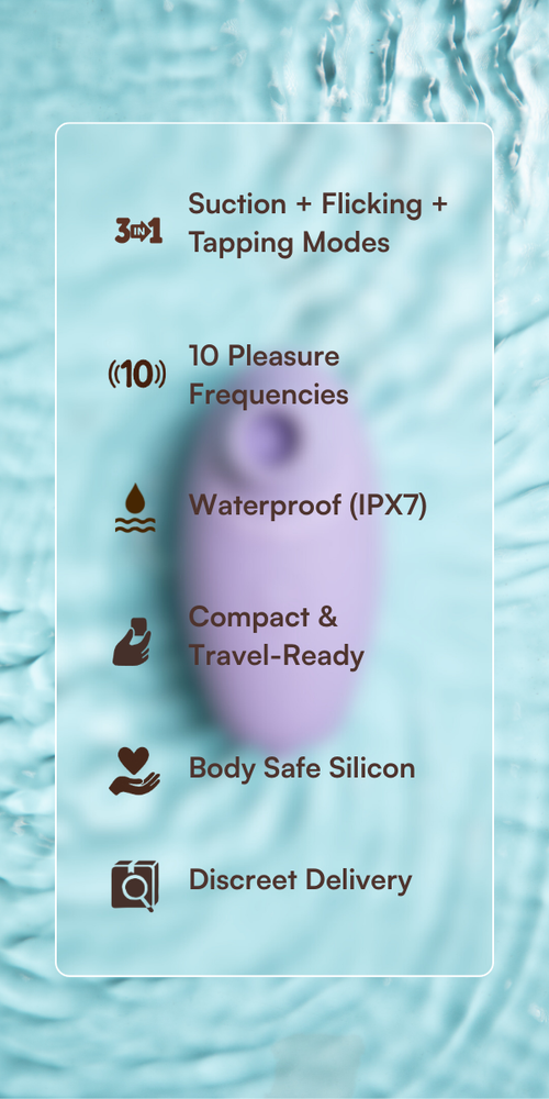 Meet Atria, the compact suction massager that flicks, taps, and sucks its way to your next high. Designed with gentle air pulsation, it mimics oral pleasure through 10 powerful modes — making it the best suction massager for women in India. Whether you're just starting out or looking to spice things up, Atria’s got you.
