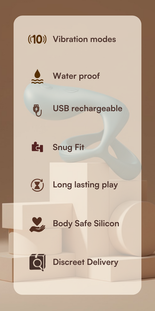 With two snug loops for support, a bold vibrating tip for her, and 10 powerful modes, it's one of the best vibrating rings for extra pleasure. It's waterproof, USB rechargeable, crafted from body-safe silicone, and ships discreetly across India.